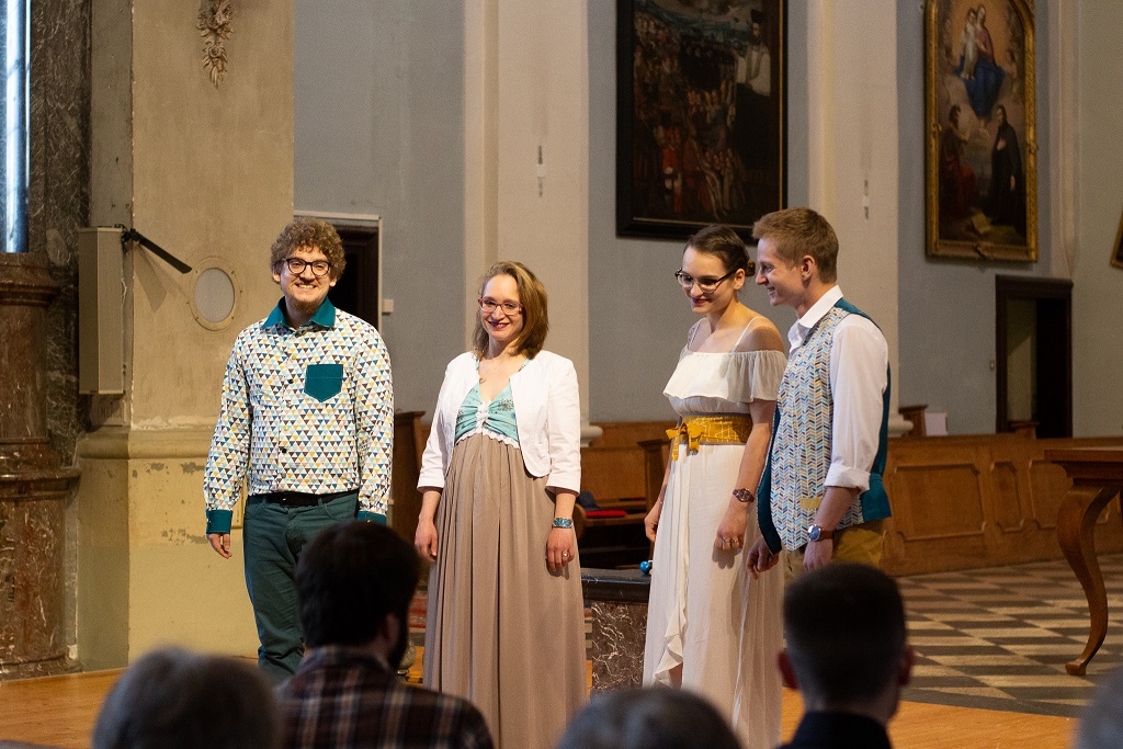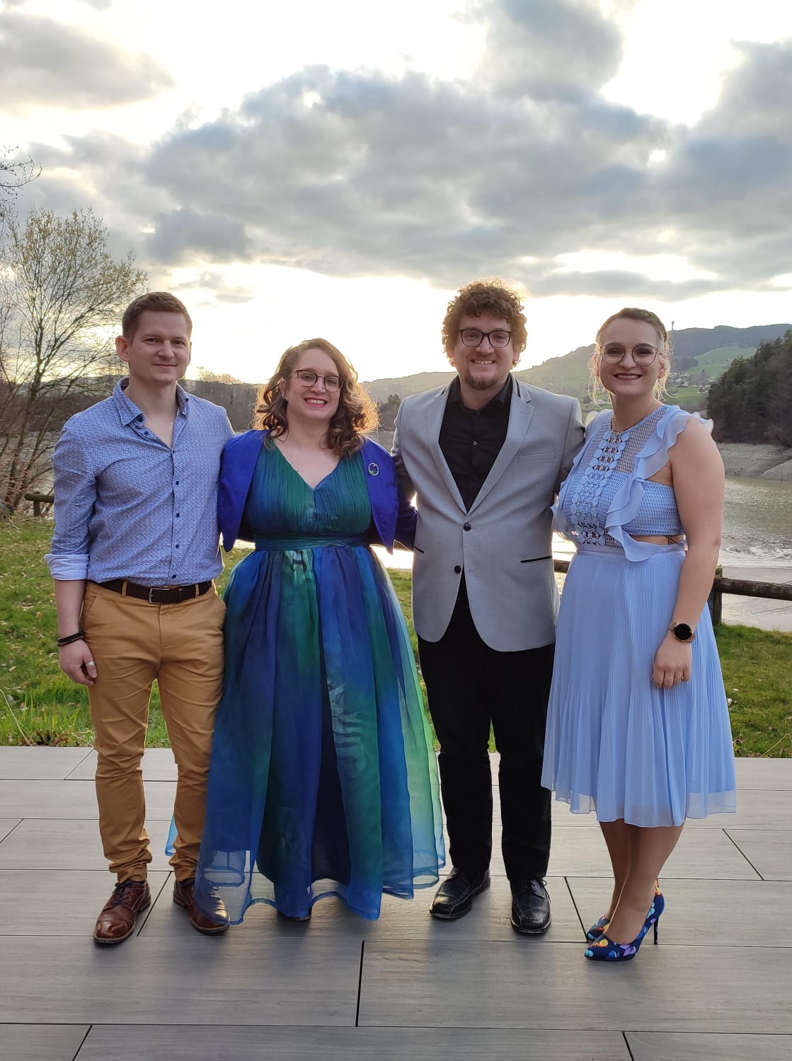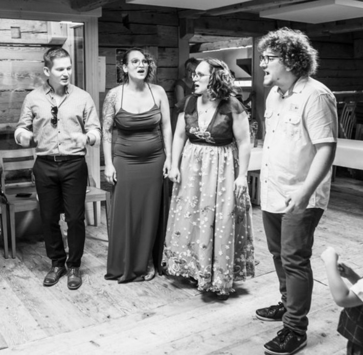 Ils ont toujours chanté ensemble à la maison, sous le sapin ou… à la salle de bain, mais leur première prestation officielle à 4 voix mixtes date de 2016, lors du mariage d’une cousine.